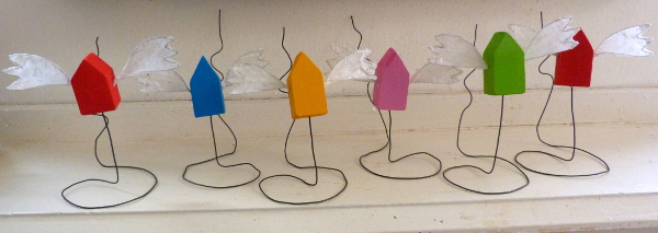 Ze maakte zo’n vijftig huisjes die grif verkocht werden, samen met het onderstaande gedicht van haar partner Bart FM Droog:
